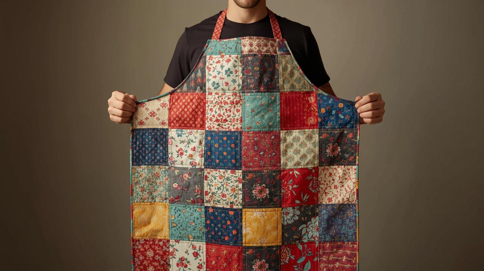 A well-pressed apron enhances the overall presentation and highlights the patchwork design.